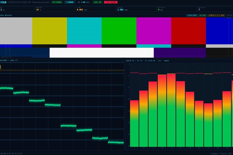 MPEG-TS / SRT P1/P2/P3 priority errors, PID analyzer, PCR accuracy graph, SRT stats
