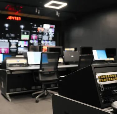Stream Monitor Real-time Waveform (custom-painted IRE graticule) + Vectorscope (IQ plot w/ targets + flesh tone) + 16ch Audio Meters